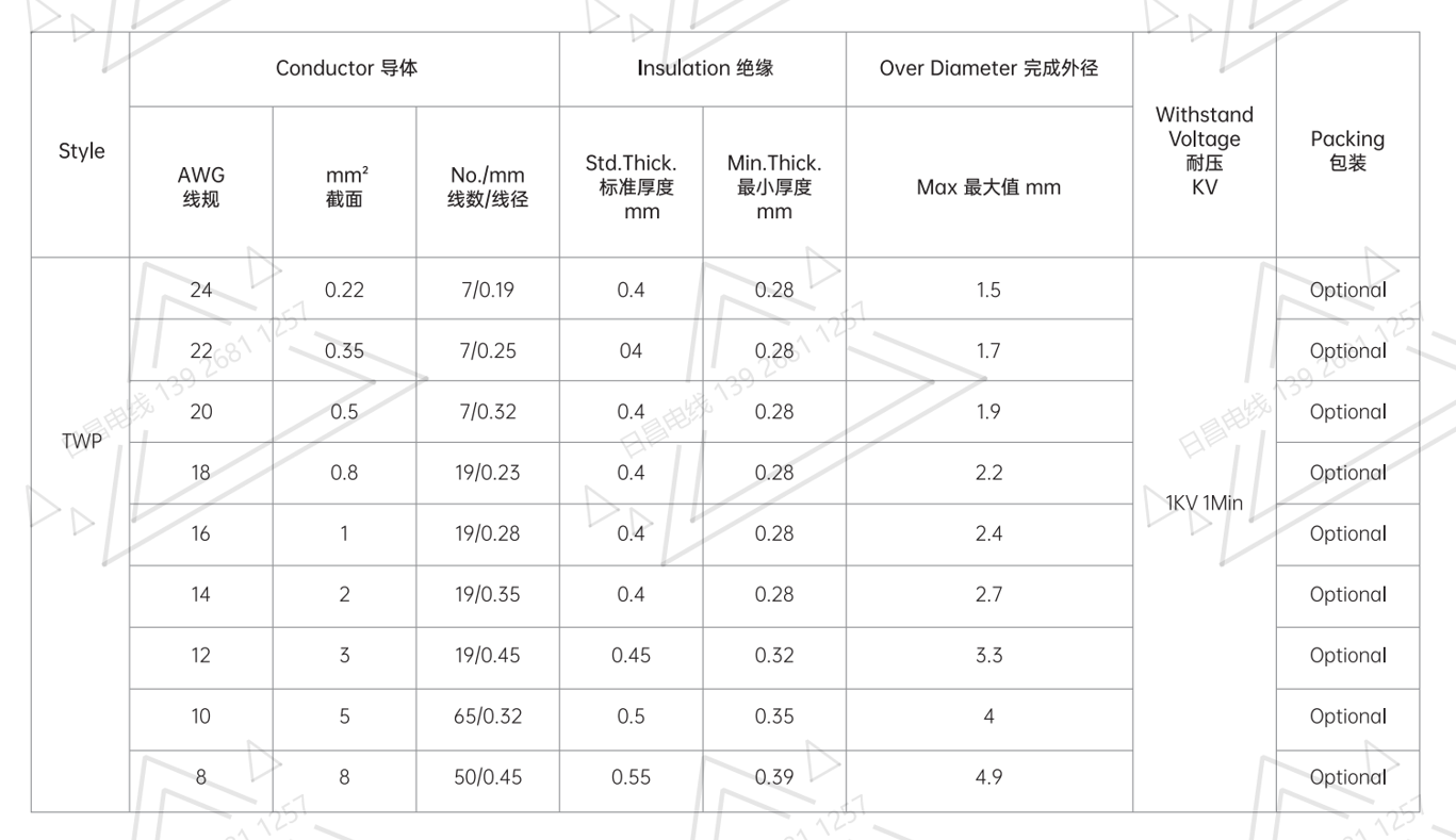 絕 緣:聚氯乙烯